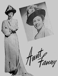 One summer afternoon in 1934 at Station WMT in Waterloo, announcer Joe DuMond - desperate for material to fill out the last three minutes of his Cornhuskers program - spotted Fran in the audience. "Well, well, folks," DuMond ad-libbed, "guess who just dropped in - Aunt Fanny! Come on up here, Aunt Fanny, and tell us what's new."