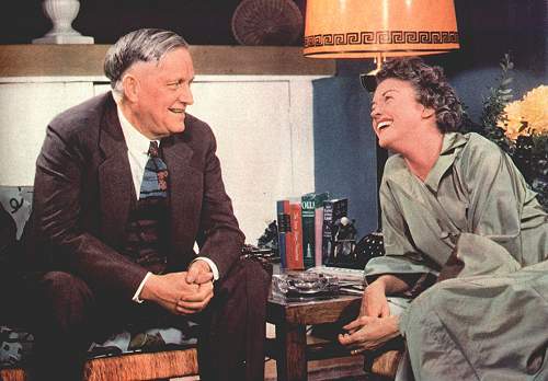 The Kuklapolitans divide their time rather evenly between gossiping with Fran and putting on plays. Kukla usually sings the romantic leads in their adaptations of musical hits like Brigadoon and High Button Shoes. Ollie, who is something of an extrovert, prefers meatier melodramatic parts. The robust manner in which he played Ferdinand to Fran's Isabella last Columbus Day was acclaimed the outstanding performance by a male dragon of the 1949 theatrical season. In addition to being Ollie's leading lady at night and Aunt Fanny in the morning, Fran has a fulltime job as the wife of Archie Levington, a Midwestern song plugger. They live with Fran's mother Nan, on Chicago's fashionable near North Side.