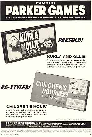 One of the toys brought out in conjunction with the "Kukla and Ollie" show in the early 60s. Nice cover, but the gameboard itself is a bit of a letdown. And the game rules are incredibly complex - here's an example: