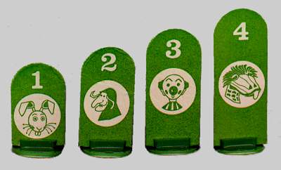 "When two or more pieces, regardless of color, are abreast in the same row or starting line, then the number of squares to be moved is determined by adding together the numbers on all the pieces in that row or starting line. For example: If the Red 2, the Green 3, the Blue 4 and the Yellow 4 were all abreast in one row, or starting line, the player whose turn it is is entitled to move his piece 13 squares as this represents the total count of all the pieces on this row before he starts his move."
