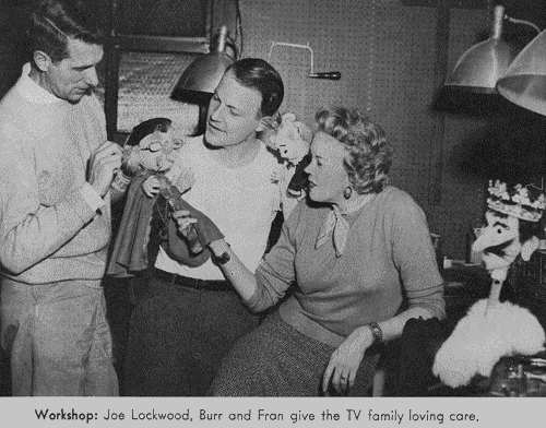 Bachelor though he is, Burr has become, in effect, the head of a large family - for the association of the staff, off-stage, is as close-knit as that of the Kuklapolitans on-stage. Four of its key members - co-star Fran Allison, producer Beulah Zachary, director Lewis Gomavitz and special assistant Joseph Lockwood - have worked with Burr ever since the show first went on the air at Station WBKB on Burr's birthday, October 13, 1947.