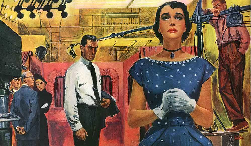 Milly finished changing into her street dress. Well, it was all over now. For two years she had been living in a phantasy world that bordered on a kind of sweet and calculated madness. She was on her way back to sanity now. She cleaned out her dressing room of her belongings and packed them in a small suitcase. Now she looked around for the last time, snapped off the lights and went out the back way down the long corridor that would lead across the deserted studio and thus avoid passing Crake's office or the lobby where he might be waiting for her with one last attack.