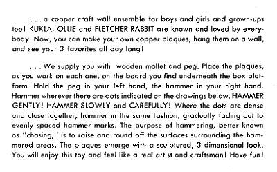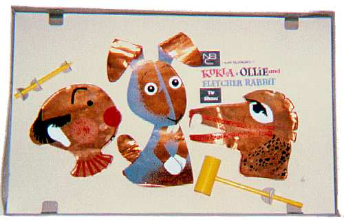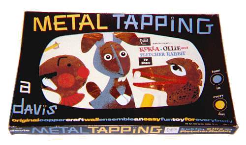 Another bizarre Davis toy from the early 60s. Apparently, you "tapped" the metal figures with a wooden hammer to make KFO plaques for your wall. These are untouched, as I think was often the case! (Many thanks to Jon for loaning this item to the Kuklapolitan Webpage.)