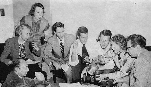 ![]() Inevitably, we all gravitate toward the piano. Perhaps Archie has a tune which is just being introduced, or Jack Fascinato has a new composition, or perhaps we all have an urge to sing "Sweet Adeline." Secure in the isolation of the coach house, we raise our voices and laugh as loudly as we please, knowing we're not disturbing neighbors in the next apartment. Burr calls the place his hideaway, but from the way everyone who visits there has fun, I wouldn't be surprised if it turns out to be the secret place which has a well beaten path to its door. |