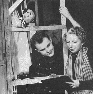 1947. As puppeteer and girl-who-talked-to-puppets,