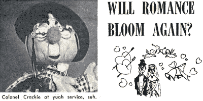 You might think that that would end the matter and both parties would leave well enough alone. But here's Col. Crackie back at the old stand displaying all the ardor of a frustrated Don Juan.